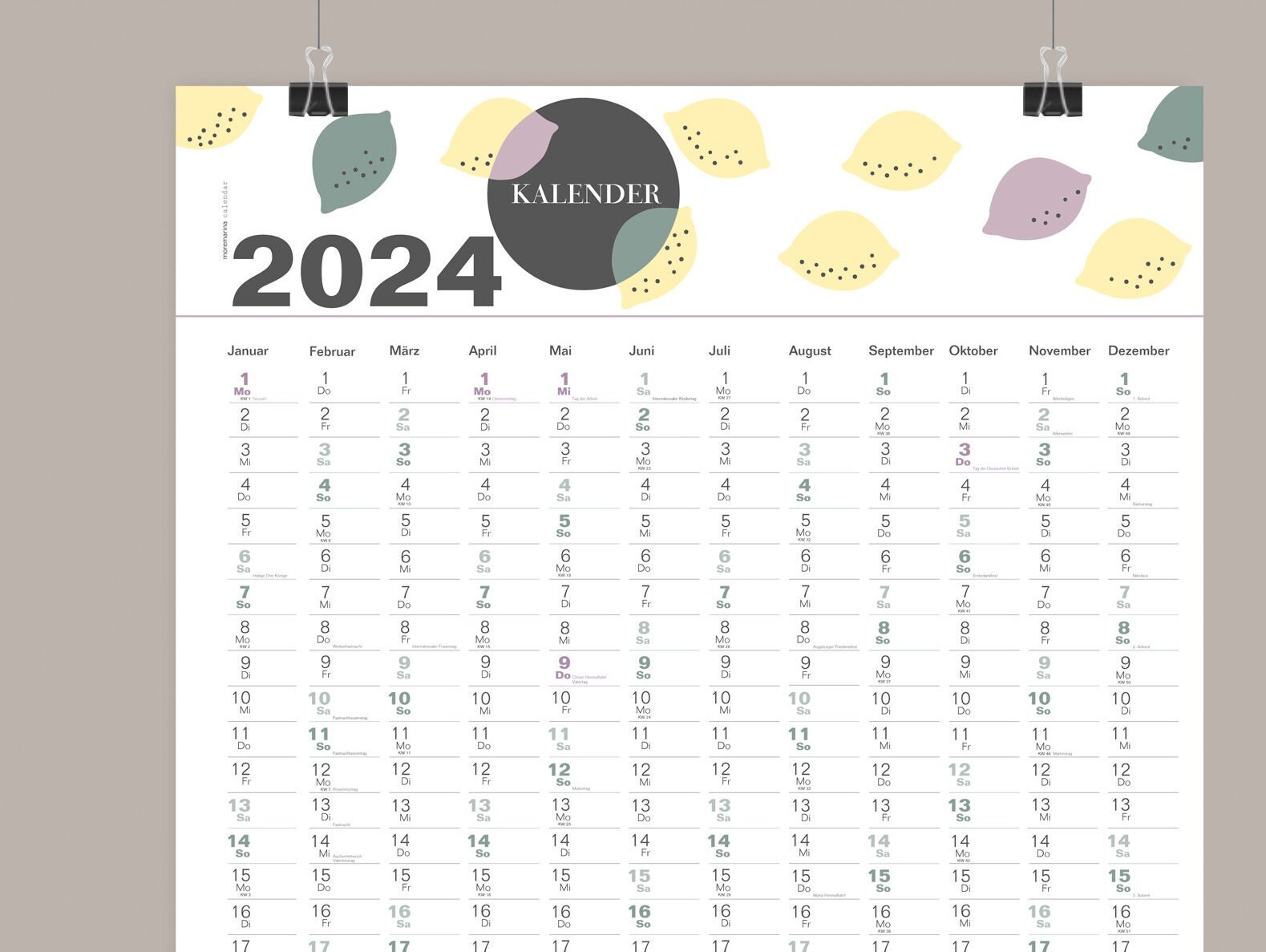 Calendar / Annual Planner 2024 Lemon 70 X 100 Cm Etsy