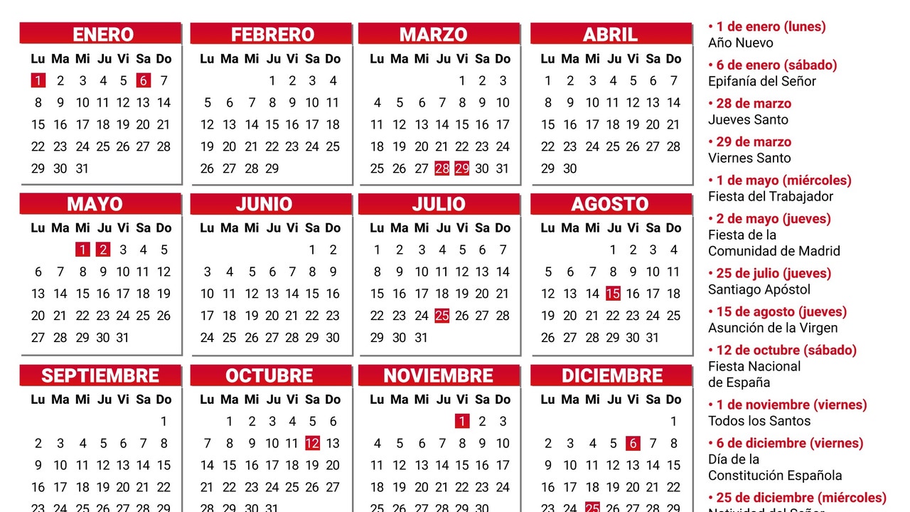 Calendario laboral 2024 en Madrid: estos son los días festivos y